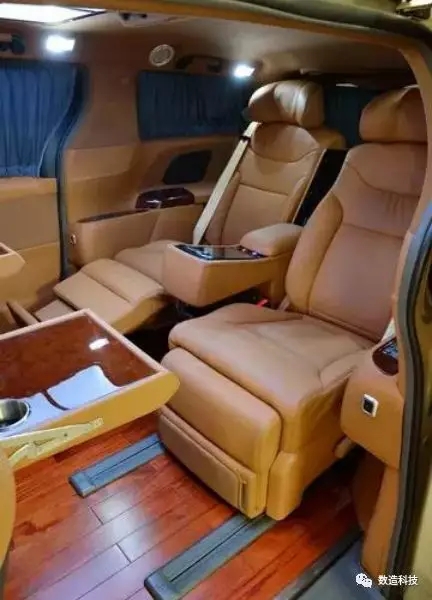 同時(shí),為了提高豪華舒適乘坐感(主要是對(duì)于第二排的主乘坐者),原廠座椅更換為帶有一鍵還原、記憶功能的納智捷原廠CEO座椅,其中的定制改裝技術(shù)難度在于需要將改裝座椅與原車導(dǎo)軌和滑塊如何有機(jī)地結(jié)合起來(lái),并使第二排座椅前后移動(dòng)的距離長(zhǎng)達(dá)1米,保證了第二排主乘坐者寬敞舒適的空間感;同時(shí)還能保證第三排座椅的所有原廠使用功能的正常運(yùn)作,折疊安放后提供后尾箱置物空間。