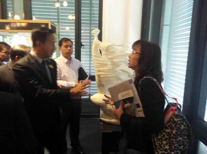 考察期間,由數(shù)造科技總經(jīng)理周黎明、國(guó)際貿(mào)易部經(jīng)理孫芳旭全程接待。在交流會(huì)上,孫芳旭經(jīng)理就數(shù)造科技發(fā)展概況及3D打印近年來在教育行業(yè)的應(yīng)用及推廣情況進(jìn)行了介紹,并和泰國(guó)客人開展了深入交流與討論。會(huì)后,泰國(guó)客人又饒有興趣的參觀了3D打印展廳展品、3D打印生產(chǎn)車間及后處理工藝,孫經(jīng)理對(duì)客人們提出的問題一一作了解答.